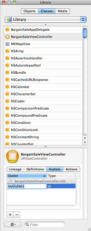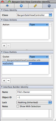 BargainSaleViewController ってのが表示され、その下に Outlets が表示されます。